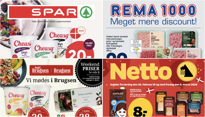 Rema 1000 tilbyder hakket dansk oksekød med grøntsager, grise- og kalvekød, kyllingekød eller Frilandsgris skinkekød til kun 29 kr. for 400 g. Tilbuddet gælder fra søndag den 1. marts til lørdag den 7. marts.