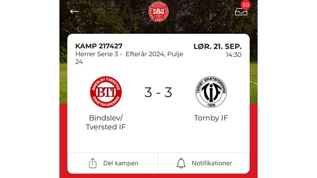 Tornby IF måtte nøjes med uafgjort efter en stærk indsats mod Bindslev/Tversted IF. Trods en flot præstation i store dele af kampen, kostede sidste minutters fejl Tornby IF sejren.
