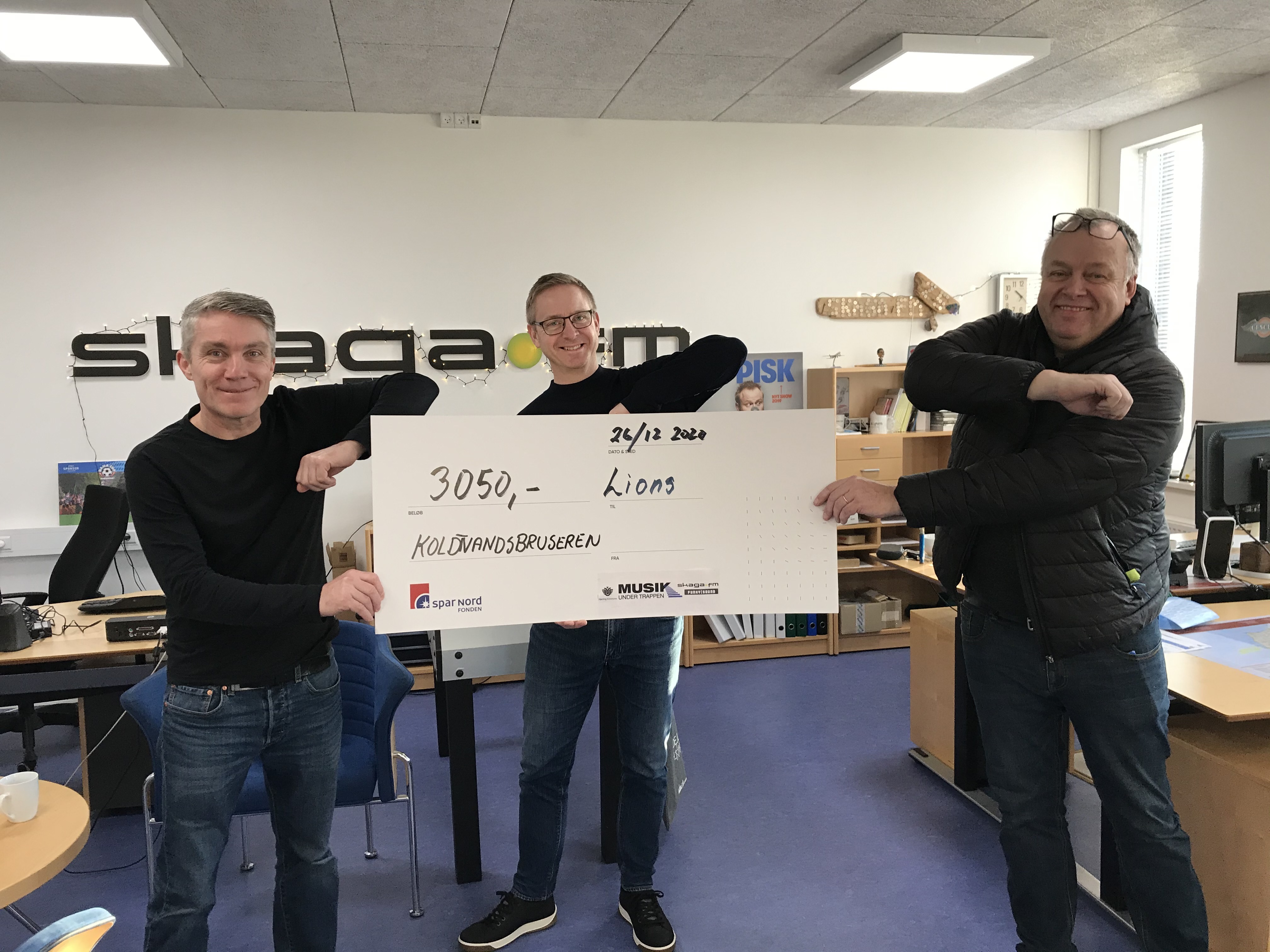 ”På vegne af LIONS vil vi gerne takke for det fine initativ med relancering af ”Koldtvandsbruseren”. Tak for et godt program, og mange tak for den fine donation, og vi glæder os til at formidle pengene ud til folk, som har ensomhed inde på livet i denne underlige Corona-tid, siger Præsident for LIONS Hirtshals, Jesper Christensen