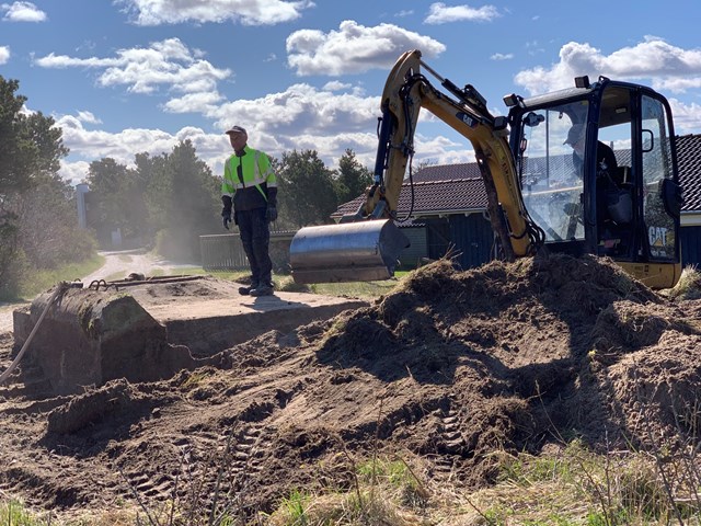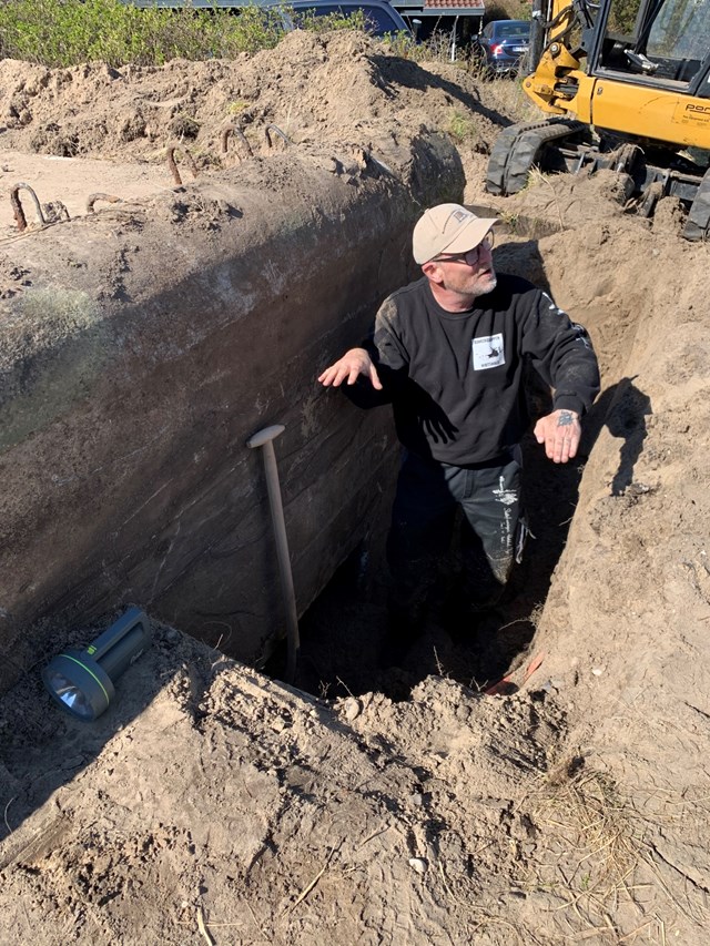 Lørdag morgen var der så kaldt til udgravning på Gl. Skovvej i Tversted og i samarbejde med Hasse Andersen fra EXH EJENDOMSSERVICE i Hjørring, der yderst venligt havde stillet både firmabil og gravemaskine til rådighed for Bunkergruppen Hirtshals, så kunne projekter begyndte sin gang!