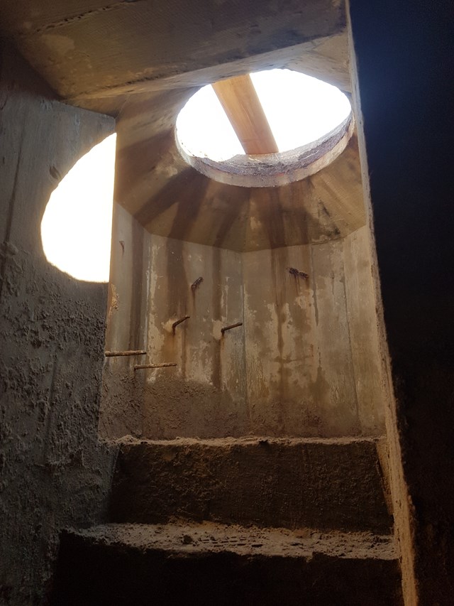 Bunkeren var forventeligt halvt fyldt op med sand, så dagen gik med skovl og spand og bunkeren blev behørigt tømt, med sved på panden og ømme muskler.